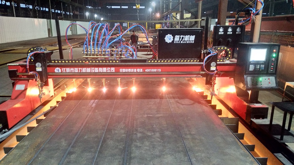 二、多頭直條火焰切割機主要是利用多把火焰割炬將鋼板按切割要均勻的切割成一條條,他因為兩邊能夠同時受熱,可以有效的防止鋼板因為單邊受熱而造的熱變形,一般來說,如果要求切三個直條,就務必用四把槍進行切割,依次類推,如果要求切n個直條,就務必配n+1把割槍,別外如果除了要求切割多個直條以外,還同時要求切割異形工件,或者不規則圖片零件,則要求另外配備一把數控火焰割炬,這樣就既能切割直條,又能切割異形件,叫做數控直條切割機,或者數控多頭切割機!主要應用行業有,鋼材市場下料,造船廠,風機廠,鋼結構廠等。